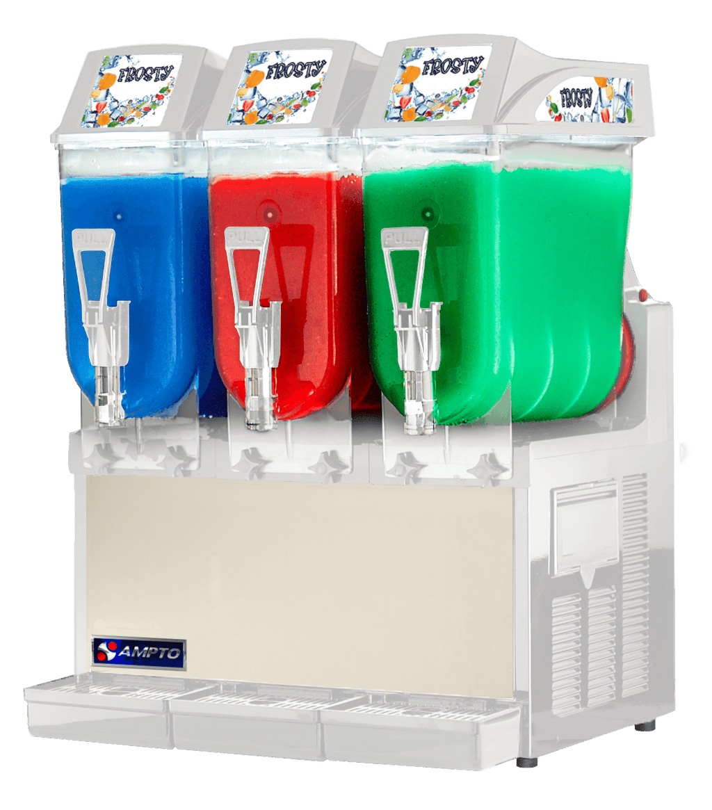 - Multi-flavor frozen drinks: Counter model frozen drink machine with (3) 3-gallon clear polycarbonate bowls and independently operating tanks.